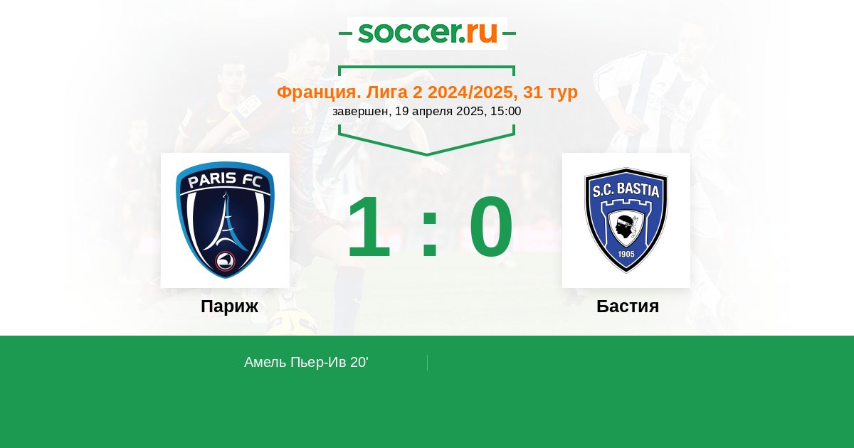 Протокол матча Париж против Бастия