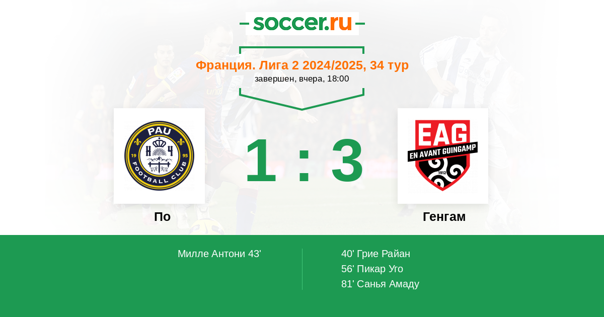 Протокол матча По против Генгам