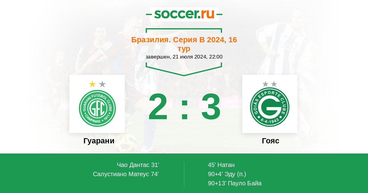 Протокол матча Гуарани против Гояс