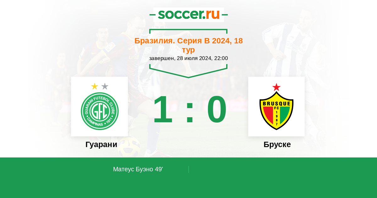 Протокол матча Гуарани против Бруске