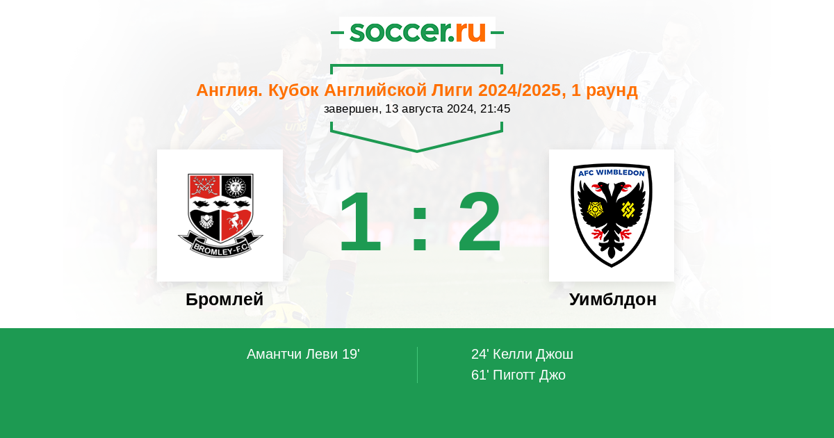Протокол матча Бромлей против Уимблдон