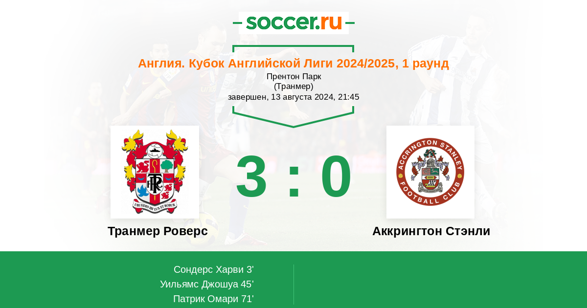 Протокол матча Транмер Роверс против Аккрингтон Стэнли