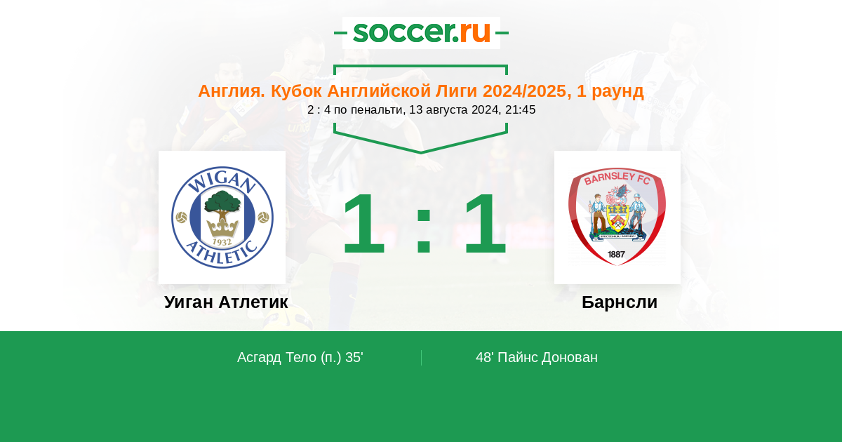 Протокол матча Уиган Атлетик против Барнсли