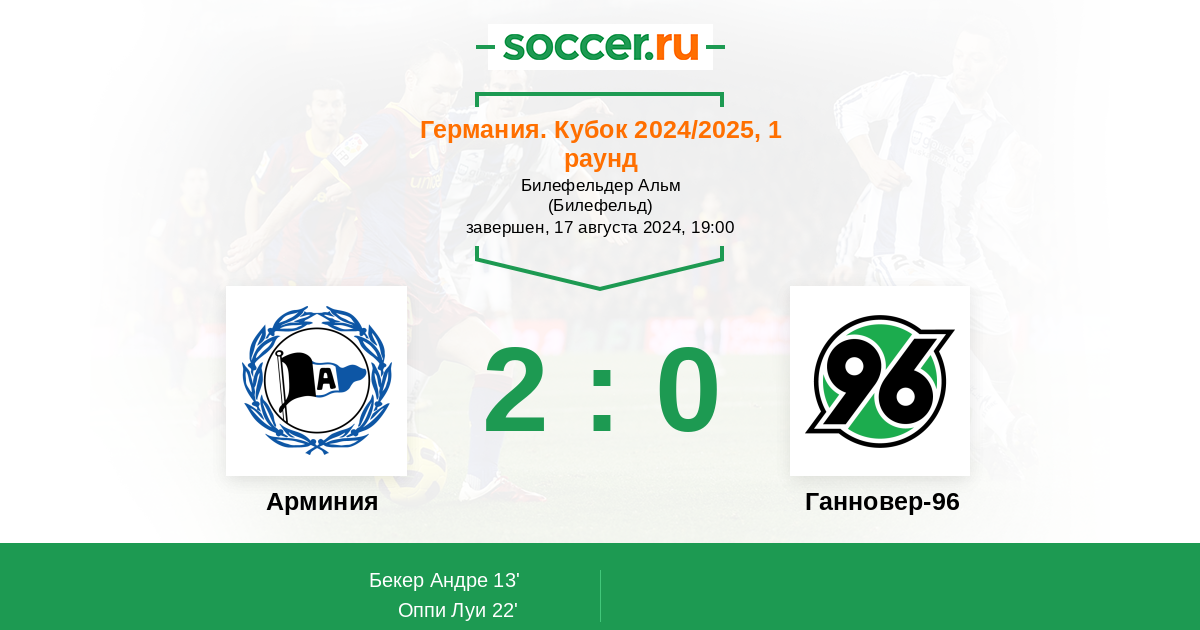 13' (1:0) Бекер Андре (39) (Верль Мариус (38))