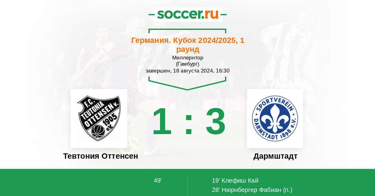 Протокол матча Тевтония Оттенсен против Дармштадт