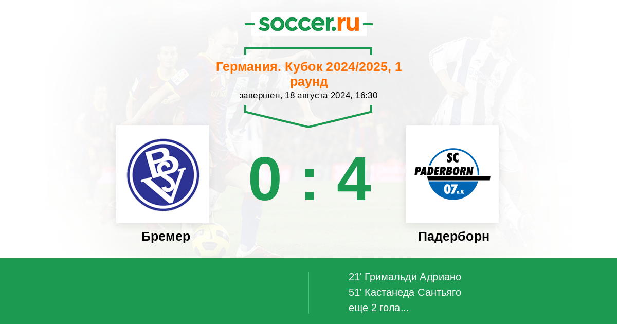 Протокол матча Бремер против Падерборн