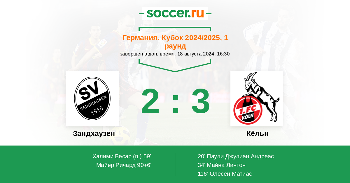 Протокол матча Зандхаузен против Кёльн