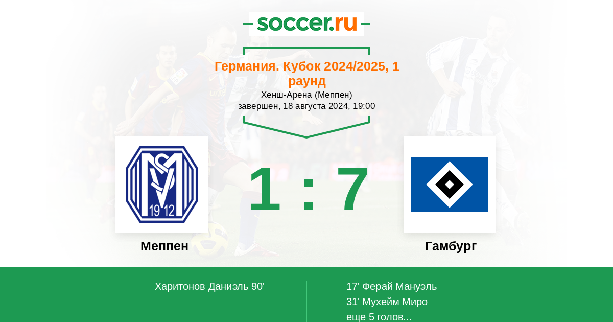 Протокол матча Меппен против Гамбург