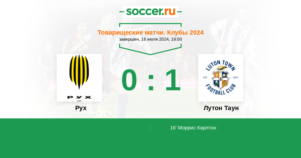 Протокол матча Рух против Лутон Таун