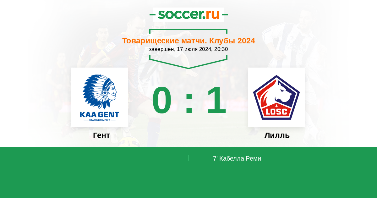 Протокол матча Гент против Лилль