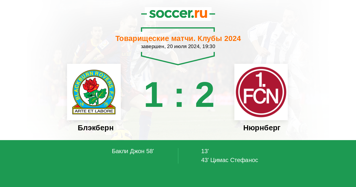Протокол матча Блэкберн против Нюрнберг