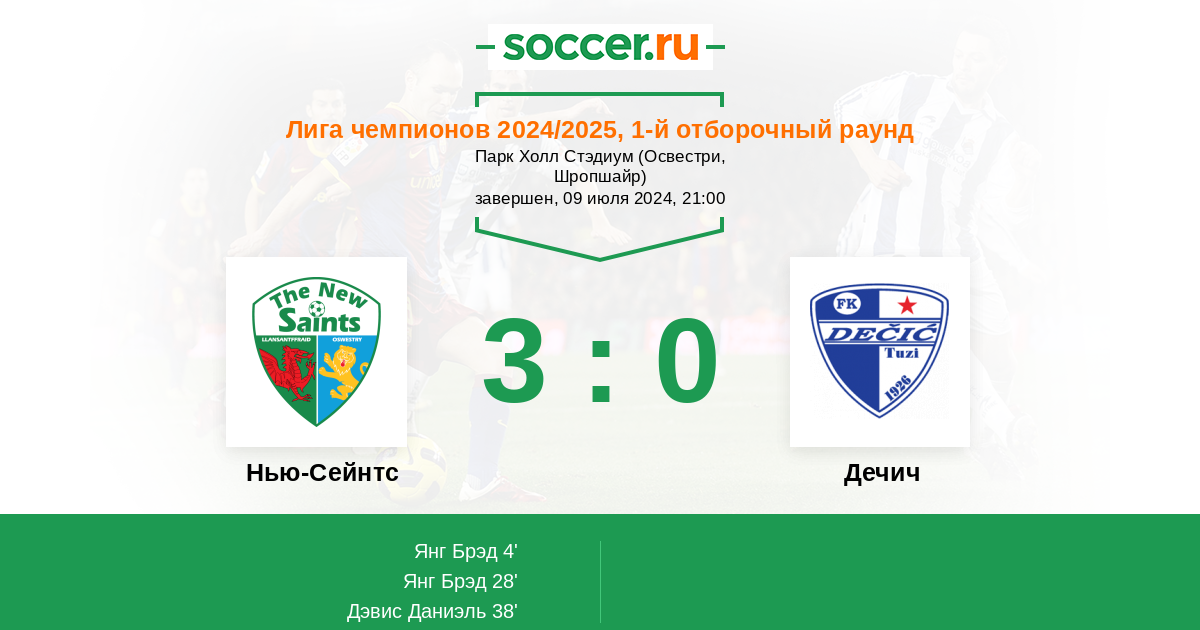 Протокол матча Нью-Сейнтс против Дечич