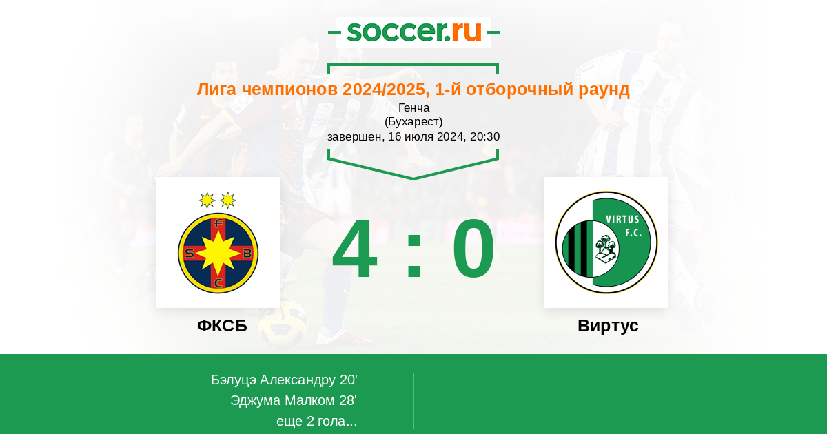 28' (2:0) Эджума Малком (18) (Бэлуцэ Александру (25))