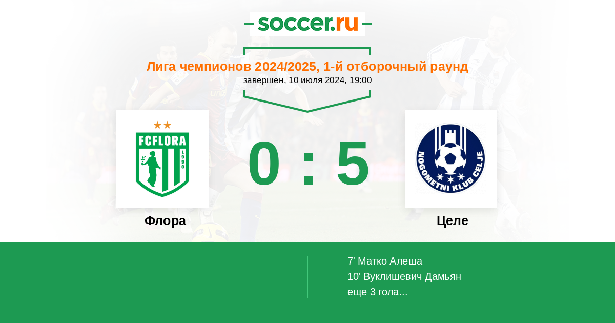 Протокол матча Флора против Целе