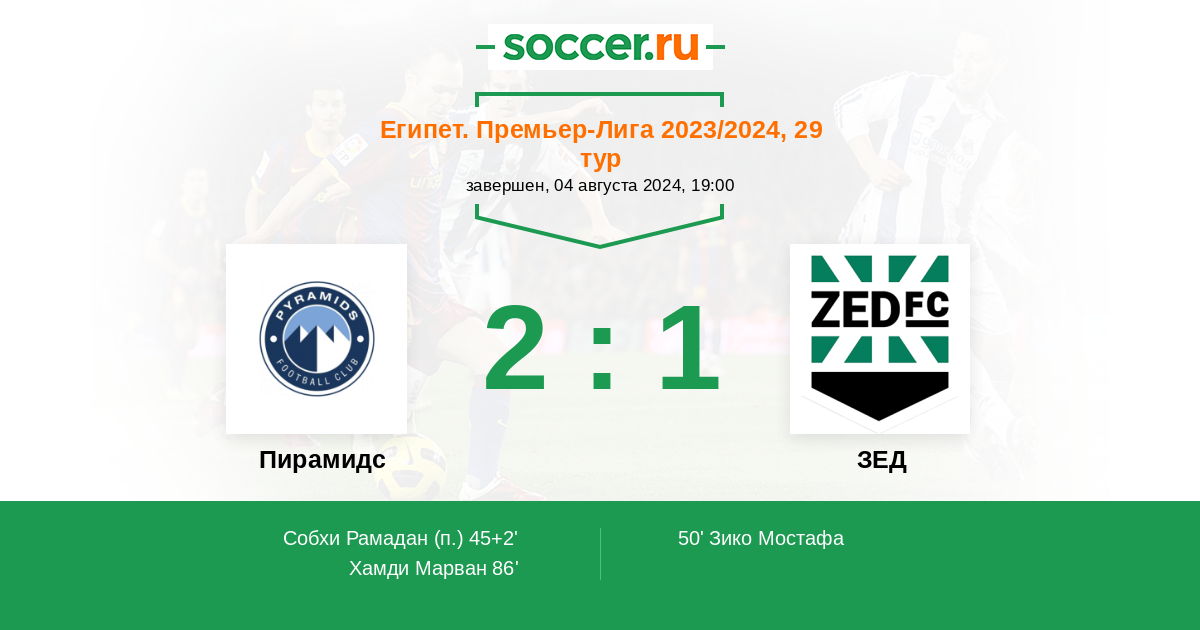 Протокол матча Пирамидс против ЗЕД