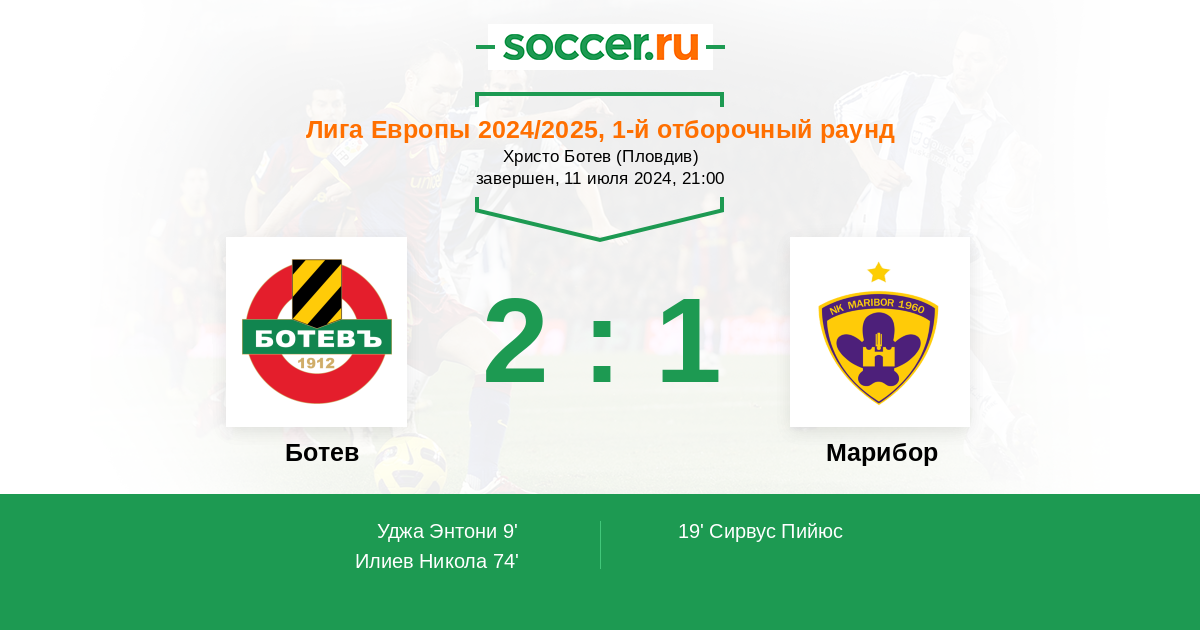 Протокол матча Ботев против Марибор