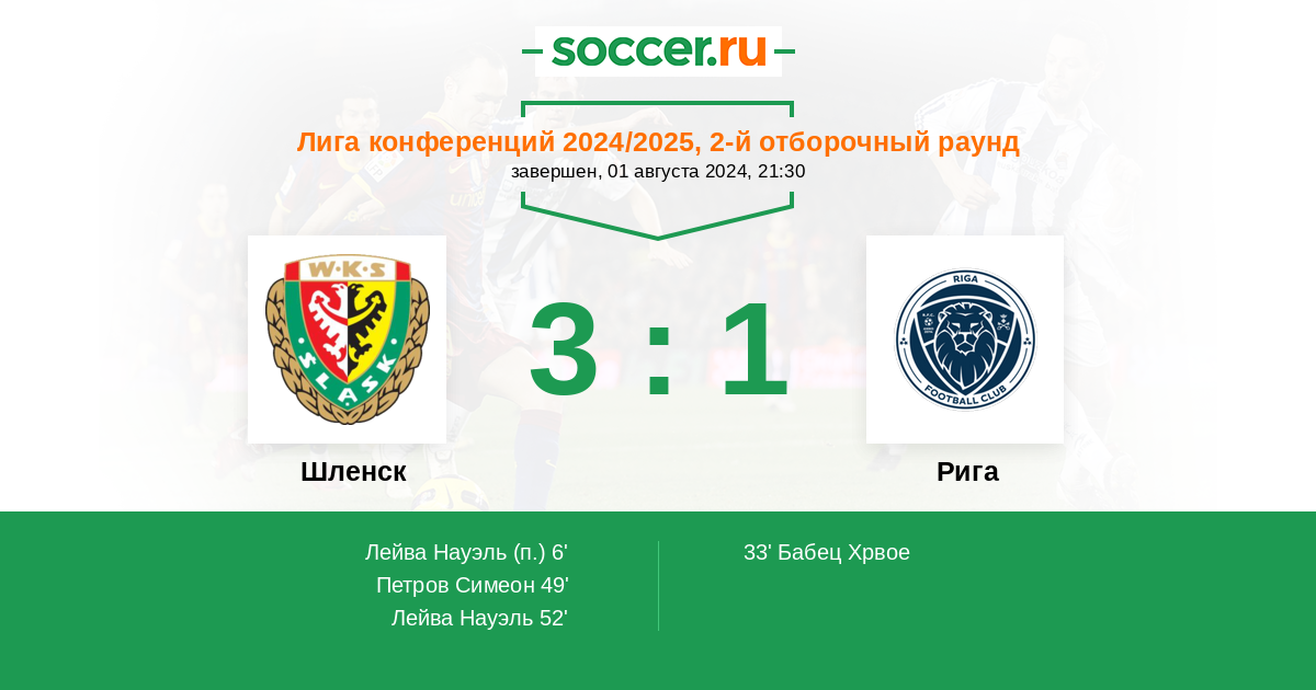 Протокол матча Шленск против Рига