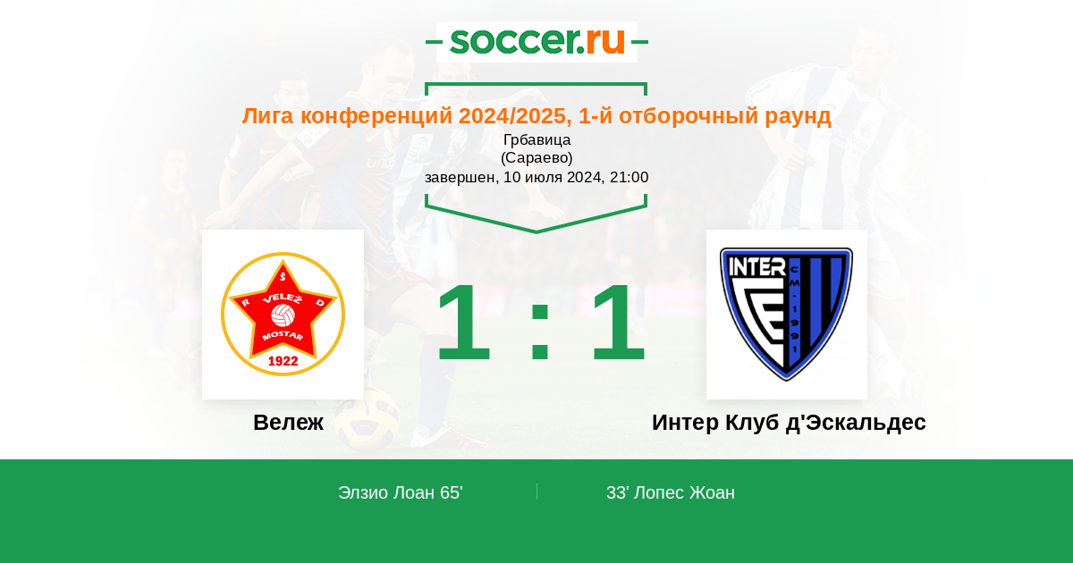 Протокол матча Вележ против Интер Клуб д'Эскальдес