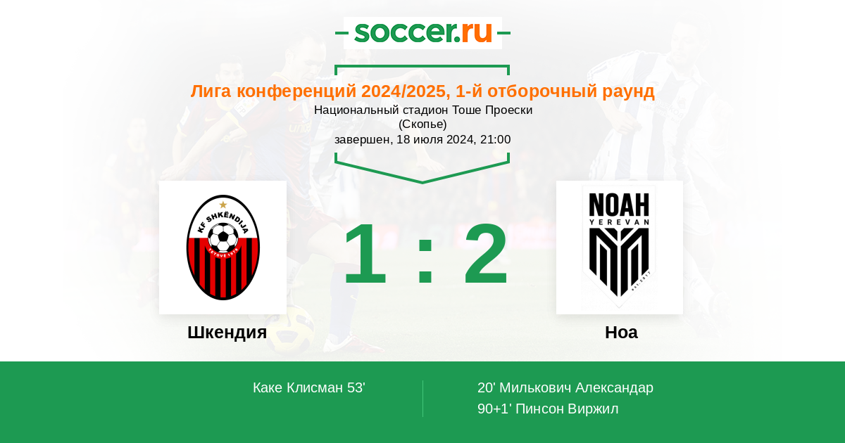 Протокол матча Шкендия против Ноа