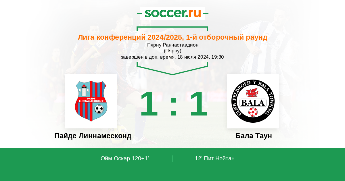 Протокол матча Пайде Линнамесконд против Бала Таун