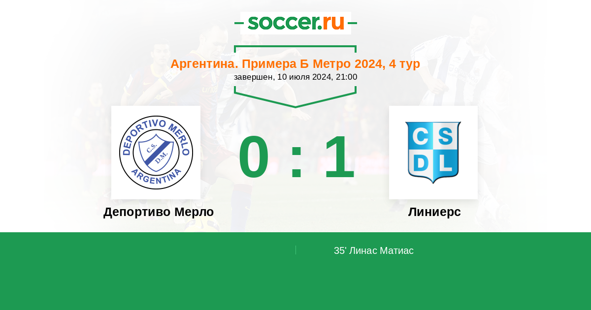 Протокол матча Депортиво Мерло против Линиерс