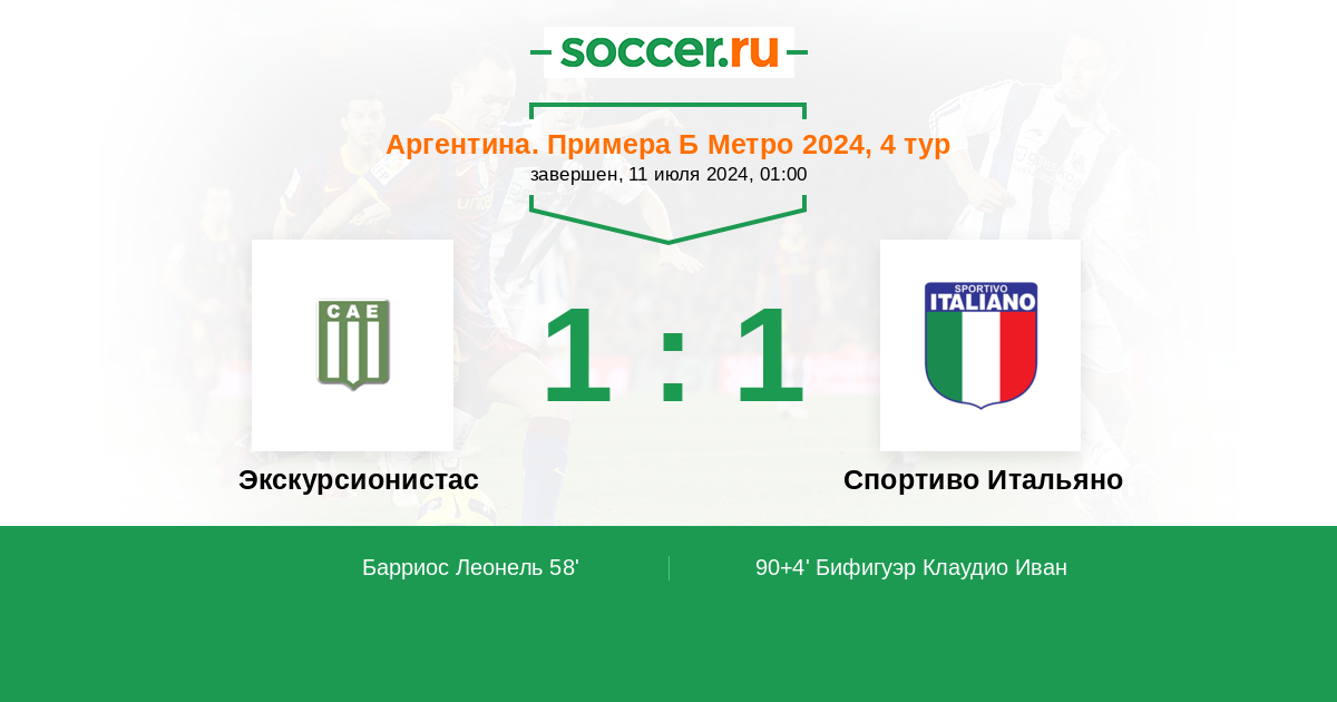 Протокол матча Экскурсионистас против Спортиво Итальяно