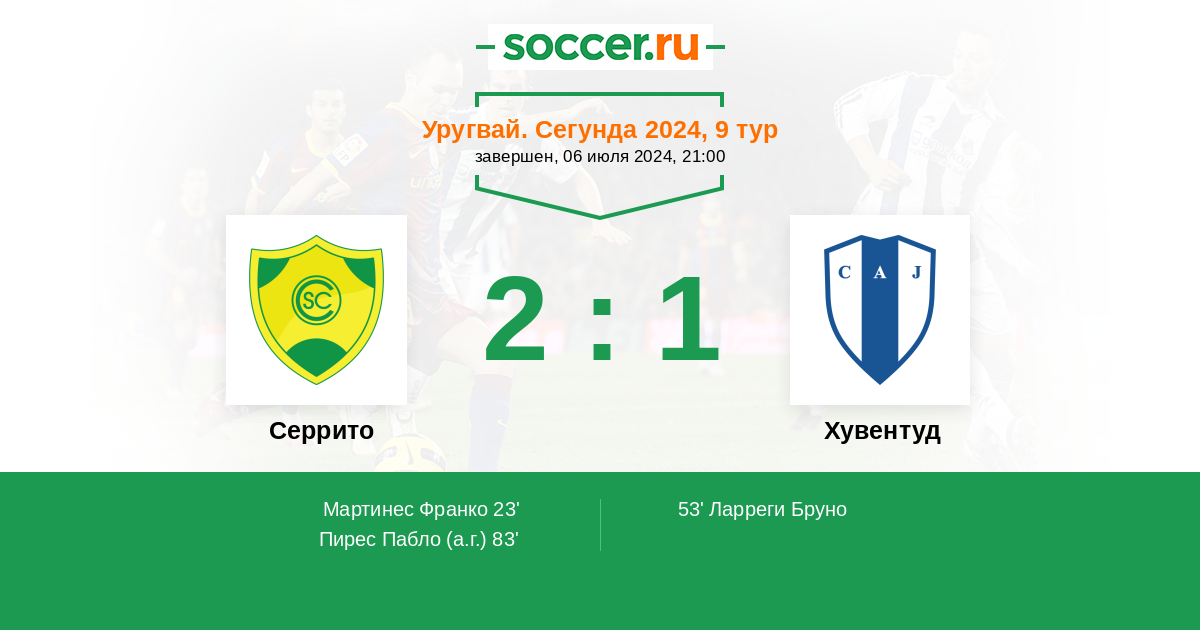 Протокол матча Серрито против Хувентуд