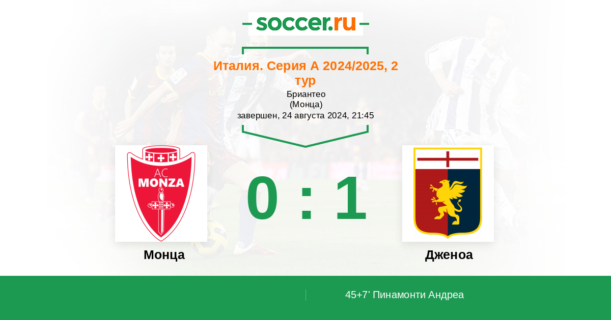 Гол45+7' (0:1) Пинамонти Андреа (19) (Сабелли Стефано (20))