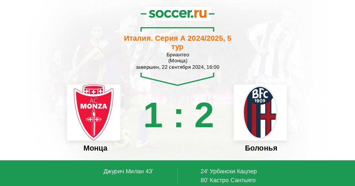 Протокол матча Монца против Болонья