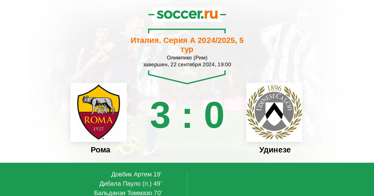 Протокол матча Рома против Удинезе