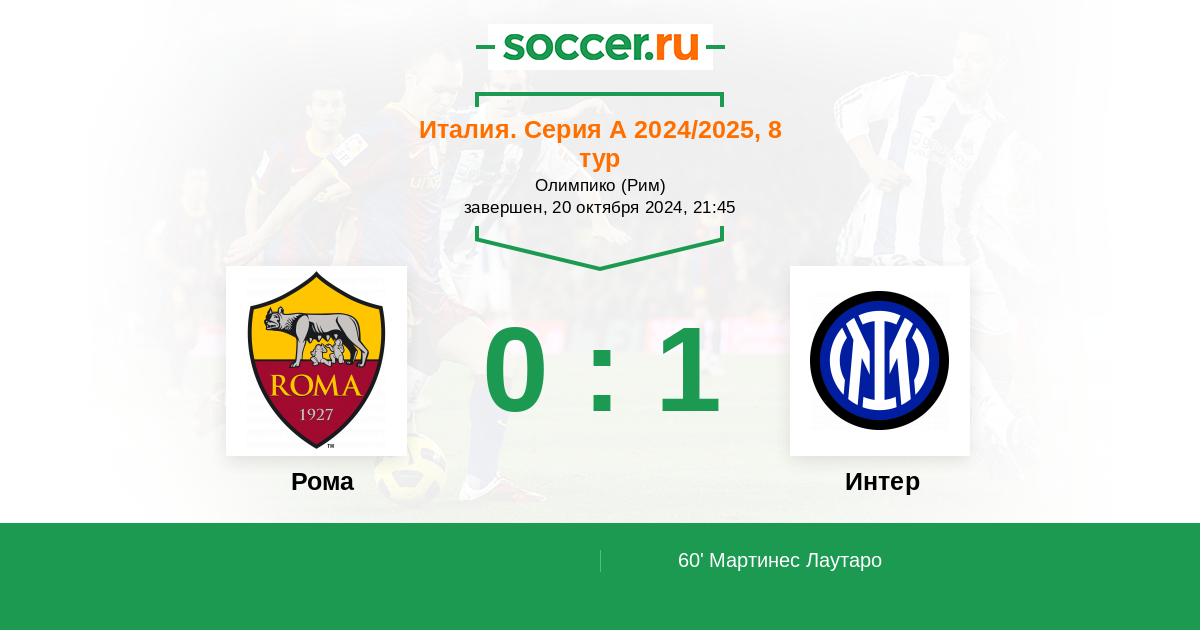 Протокол матча Рома против Интер