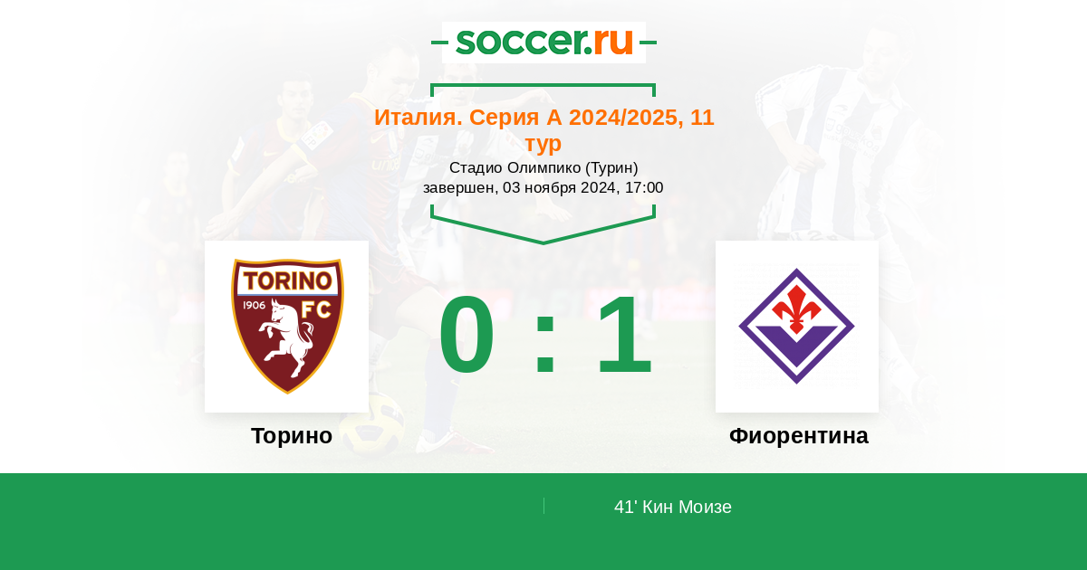 41' (0:1) Кин Моизе (20) (Раньери Лука (6))