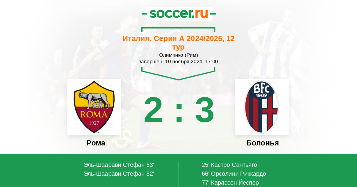 Протокол матча Рома против Болонья