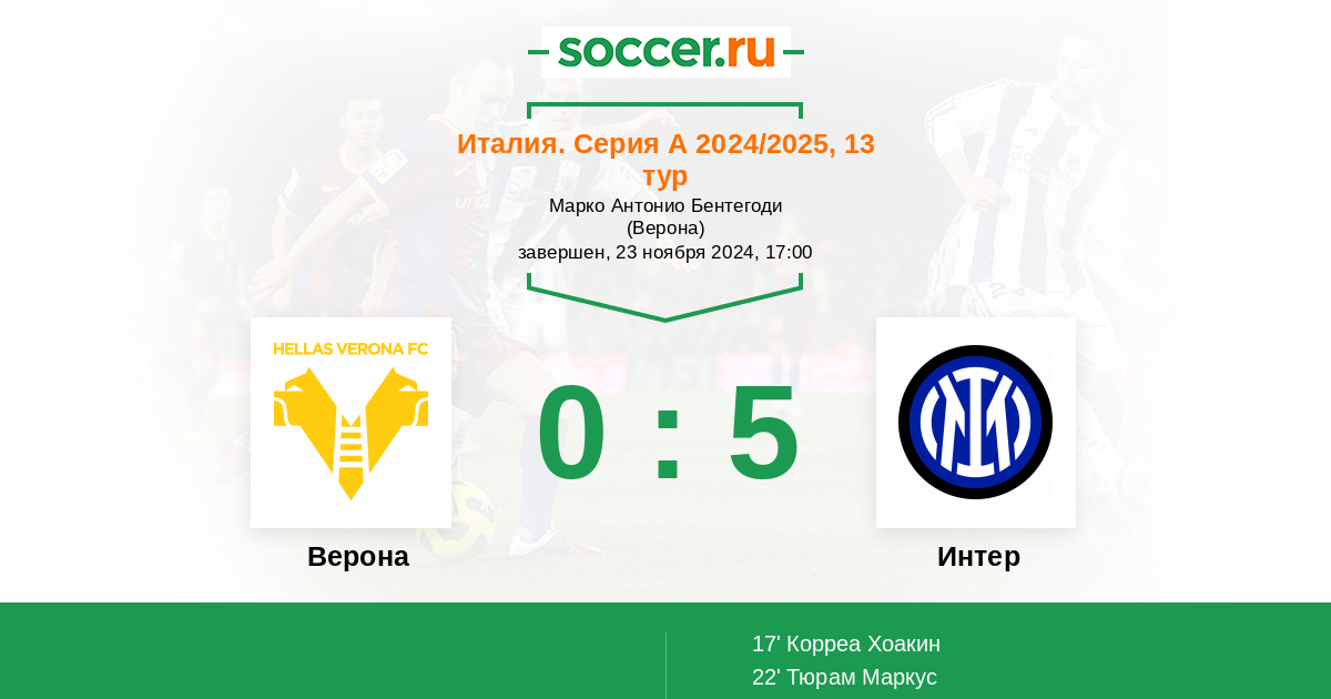 Протокол матча Верона против Интер