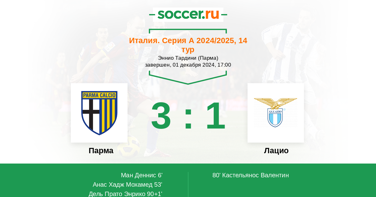 Протокол матча Парма против Лацио
