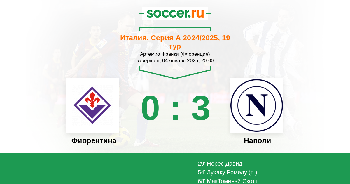 Протокол матча Фиорентина против Наполи