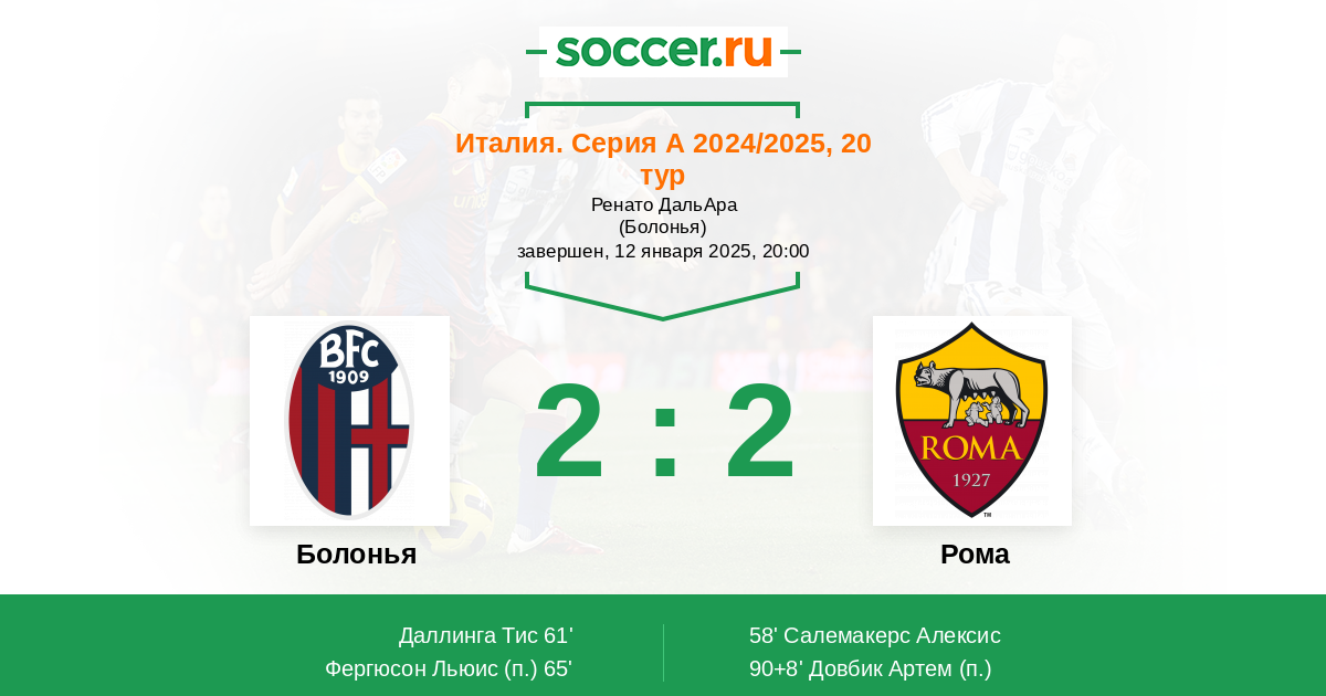 Протокол матча Болонья против Рома
