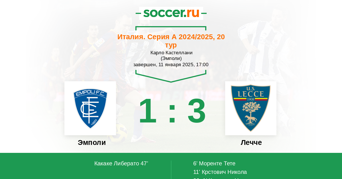 Протокол матча Эмполи против Лечче