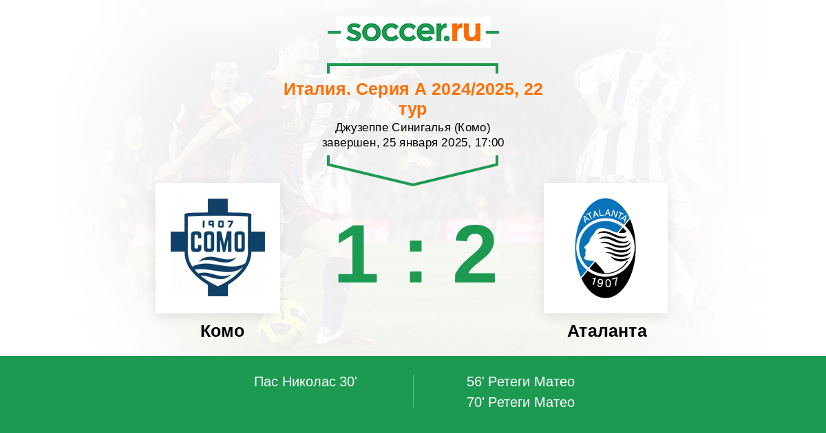 Протокол матча Комо против Аталанта