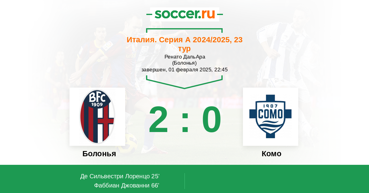 Протокол матча Болонья против Комо