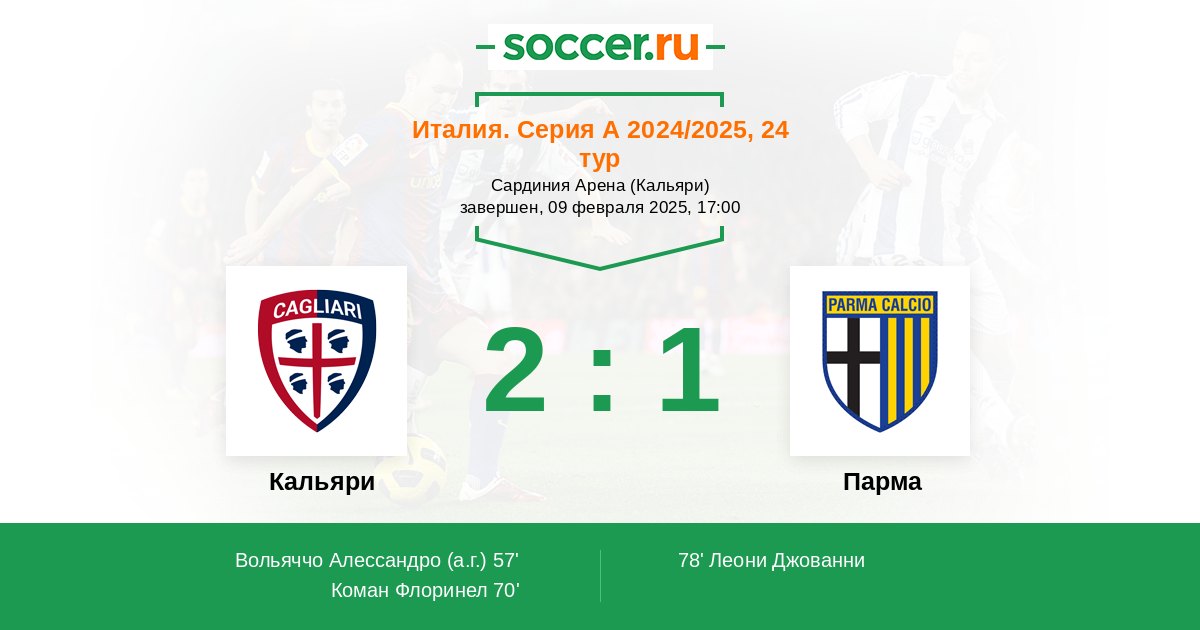 Протокол матча Кальяри против Парма