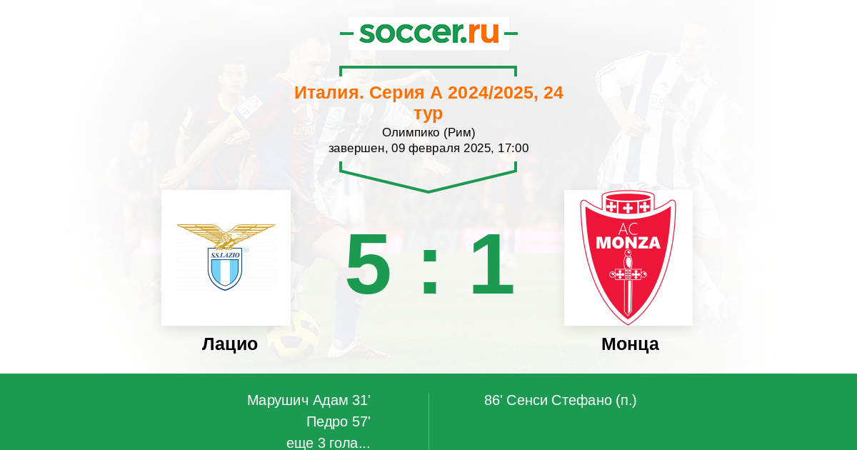 Протокол матча Лацио против Монца