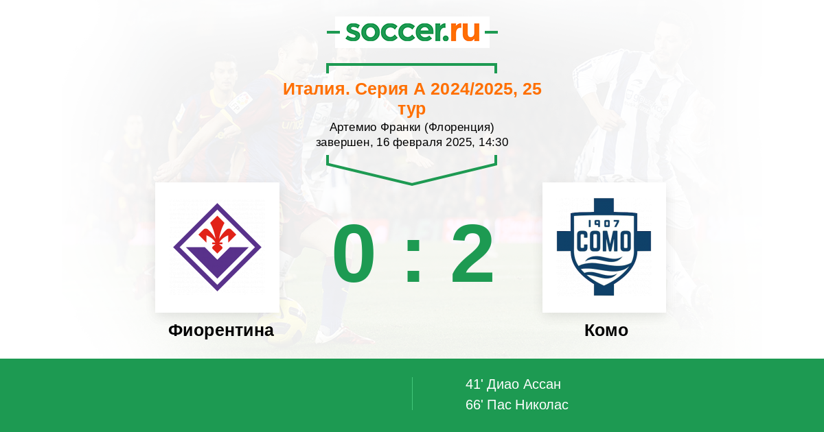 Протокол матча Фиорентина против Комо