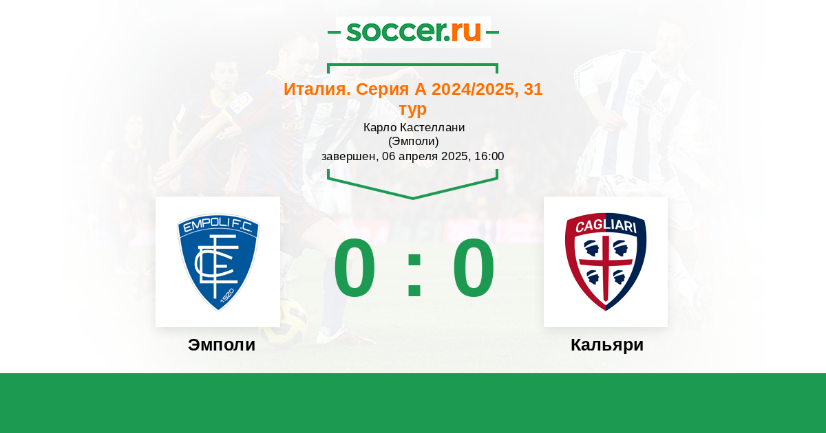 “Кальяри” хорош во фланговой игре, но взломать оборону “Эмполи” будет не так просто, как защиту разваливающейся на ходу “Монцы”. Ни о какой усталости тосканцев от насыщенного календаря говорит также не приходится – на кубковое противостояние с “Болоньей” они вышли вторым составом, в то время как основные футболисты целенаправленно готовились к важнейшей встрече с прямым конкурентом в чемпионате. Фаворита в таком противостоянии определить трудно – островитяне свои лучшие выступления показывают на родной арене “Униполь Домус”, а их соперники не выигрывают в рамках чемпионата с 8 декабря. При этом три из последних шести матчей “Эмполи” сильнейшего в основное время не выявили.