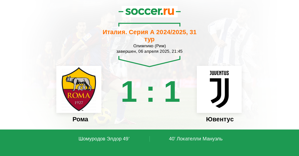 Протокол матча Рома против Ювентус