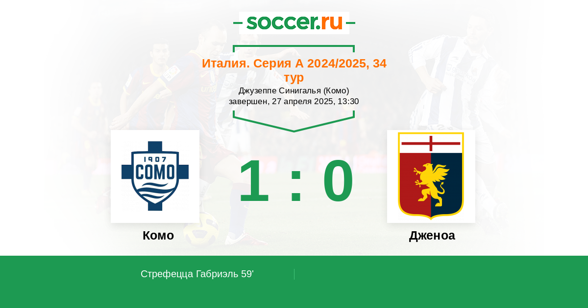 Протокол матча Комо против Дженоа