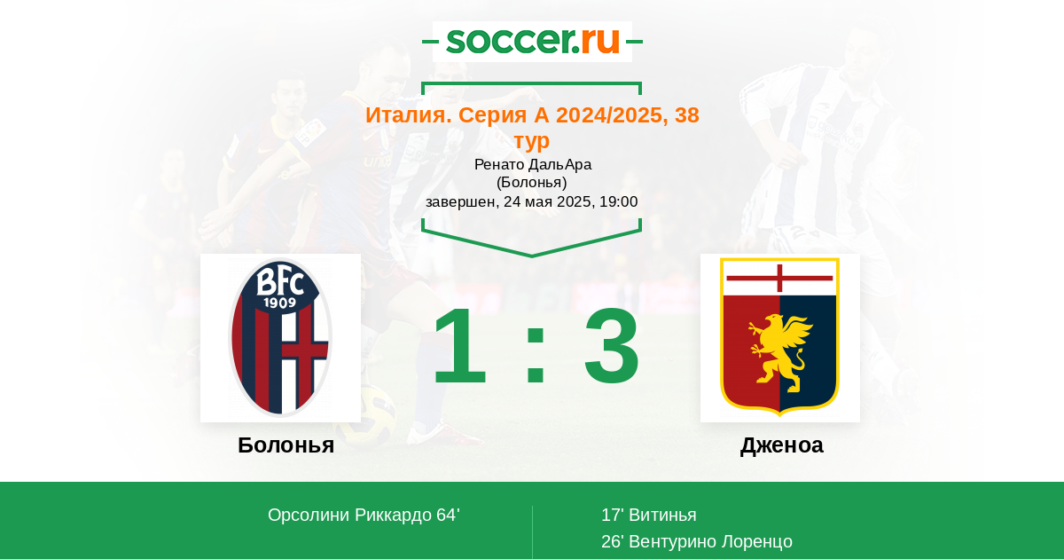 Протокол матча Болонья против Дженоа