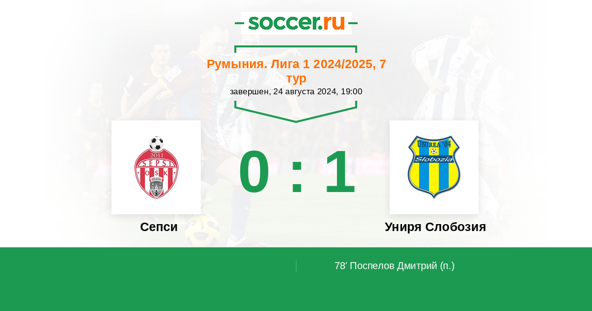 Протокол матча Сепси против Униря Слобозия