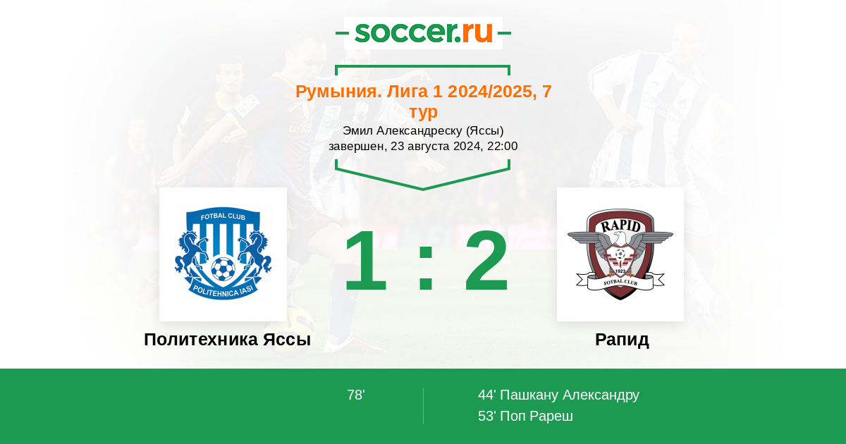 Протокол матча Политехника Яссы против Рапид