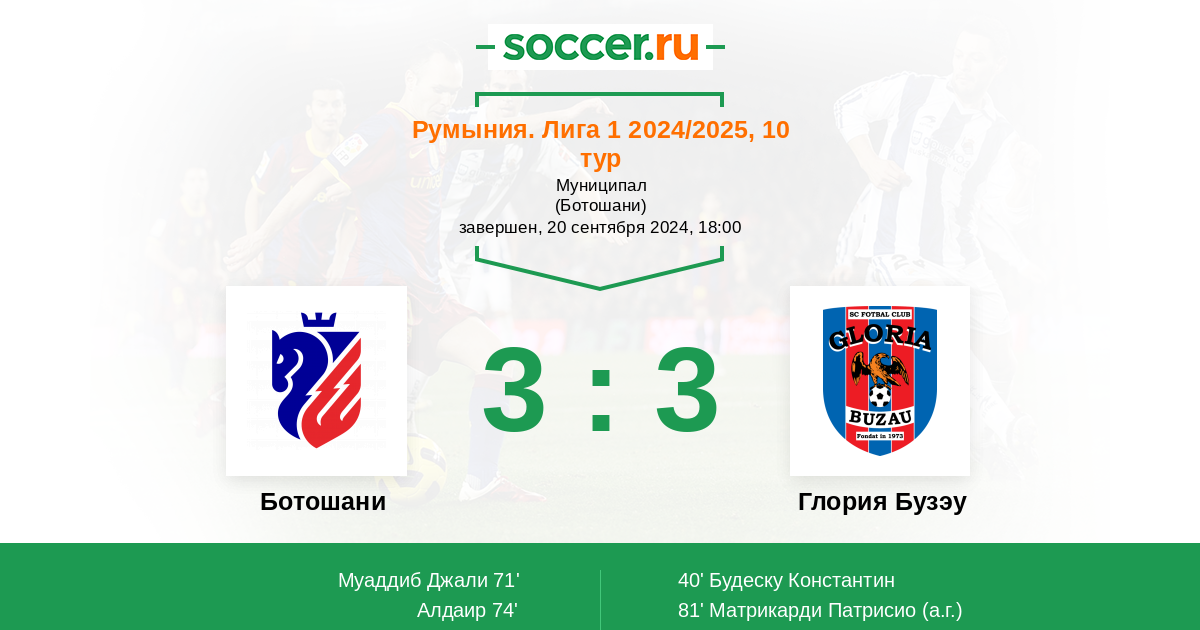 40' (0:1) Будеску Константин (10) (Йипа Александру (98))